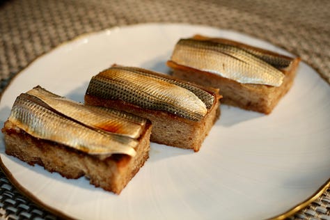 Savory pancake + mushroom martini sounds like my kind of brunch. Dreaming of that Shima Aji and occasionally California.