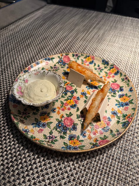 Now at Troubadour, they bake bread and serve sandwiches during the day, then four nights a week they serve a French inflected tasting menu. I am incredibly envious of their collection of vintage Limoges and Bernardaud china.