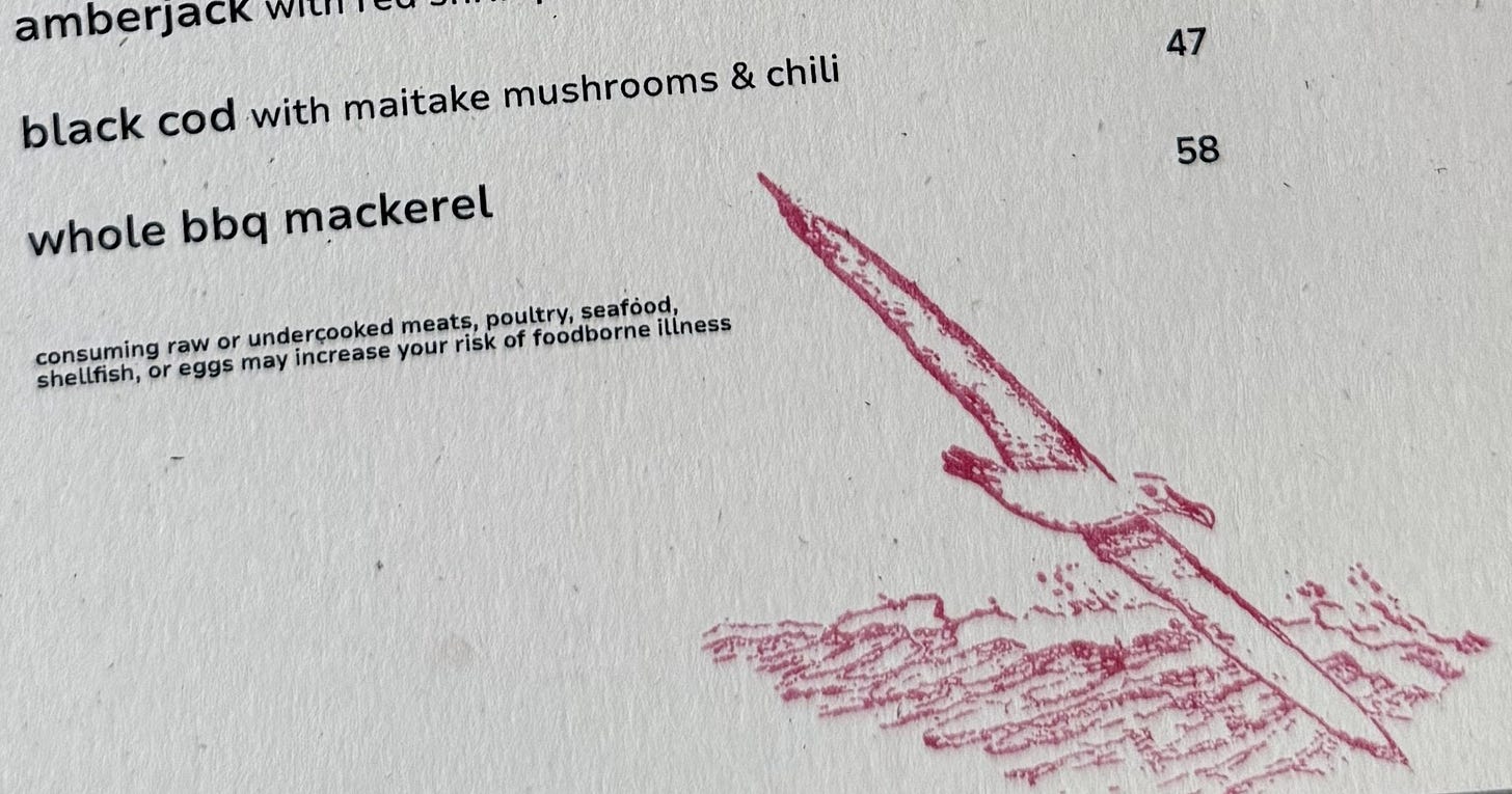 Over at Caper, Emma Orlow noted the use of stamps on our menus—all oceanic, all designed by the legendary John Casey of Casey’s Rubber Stamps here in the East Village. Highly recommend stopping by and grabbing a whimsical stamp to adorn a letter to a friend.