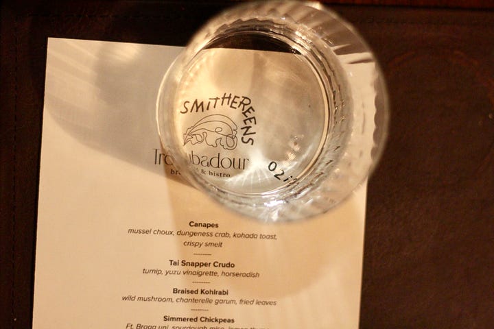 Last month, some friends in California invited us to bring the Smithereens show on the road. Happy to escape the dull gray of February, I jumped at the opportunity. First we went North to Sonoma County to cook with the team at Troubadour Bread & Bistro in Healdsburg. Troubadour is the second concept from Melissa Yanc and Sean McGaughey, the couple behind the fantastic bakery, Quail & Condor. I first met Sean in 2020 during the heart of the pandemic. I had just moved to Napa Valley and found myself working at SingleThread, where Sean was the chef de cuisine. He had been there since the very beginning, and was on his way out to start up the bakery with Melissa.